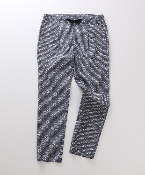 すっきりとしたテーパードシルエットはスタイリッシュに、オリエンタル調のブルーのプリントと相まって爽やかな印象を与えます。