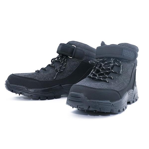 ●スタイリッシュな杢柄ブラック、紐締めにより足に優れたフィット感。●スパイク底は、日本メーカーによる日本人に合った幅広ソールとフィット感を追求した設計。●靴底の独特なラバー意匠とスパイクの配列により滑りにくく、岩場や湿った地面でのグリッ力と安定性を確保し、岩場や川岸での移動や立ち上がりがスムーズ。● 履き口からつま先まで柔らかいクッションを挟み込み、足の動きをサポートし長時間の釣りでも足の疲労を軽減。●アッパー素材は耐水性と速乾性に優れ、型崩れしにくい合成繊維を使用。●中敷きのカップソールは通気性の良いメッシュ素材を使用し快適な履き心地。