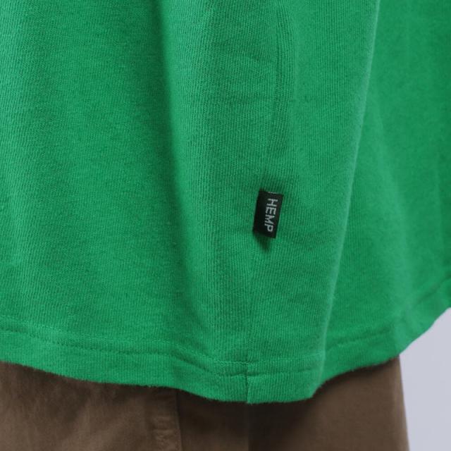 ヘンプ混特有の甘く編まれながらも、しっかり厚みのあるTシャツ素材で、綿100%とは違う落ち感が楽しめます。