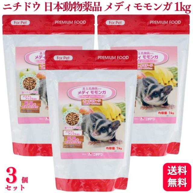 送料無料 3個セット ニチドウ メディモモンガ 1kg 日本動物薬 モモンガ フード 餌 フクロモモンガ マルチサプリ 乳酸菌 善玉菌 腸内環境 健康管理