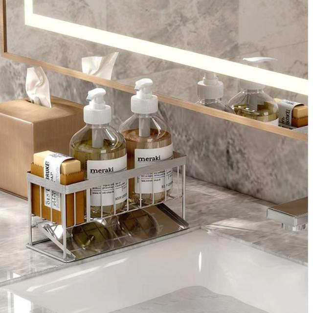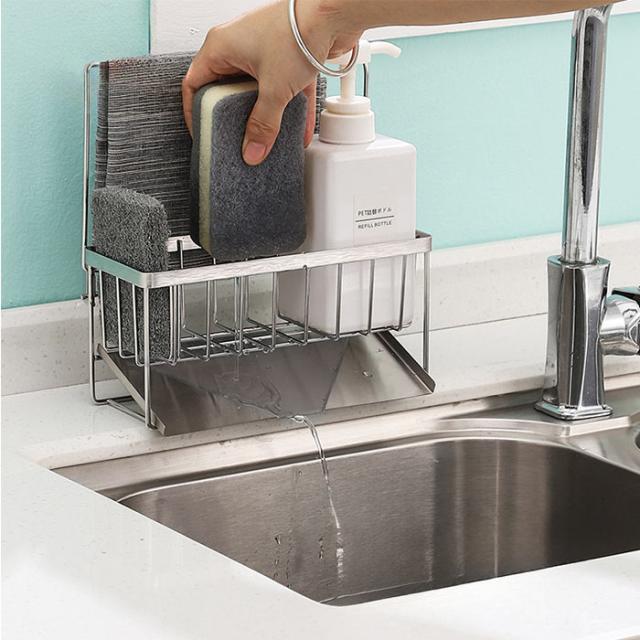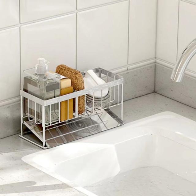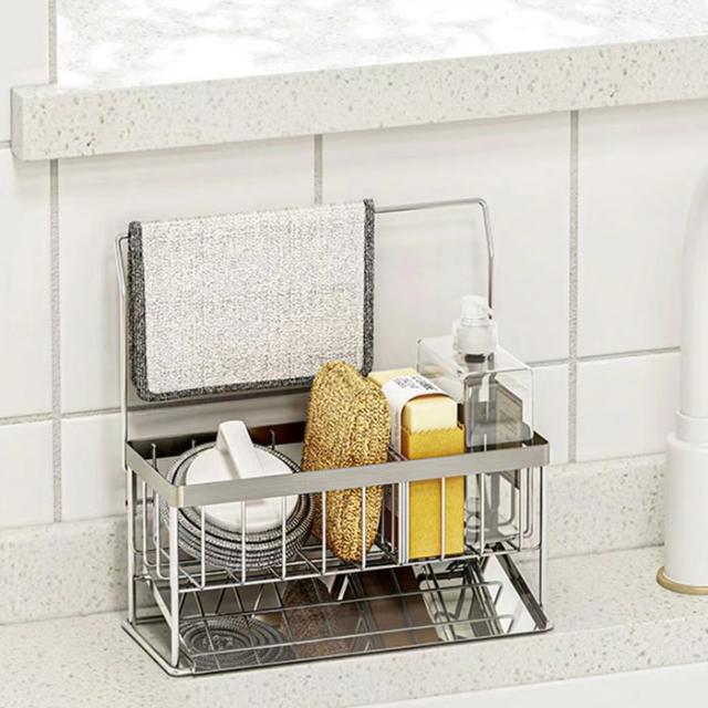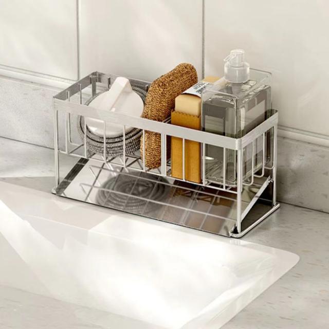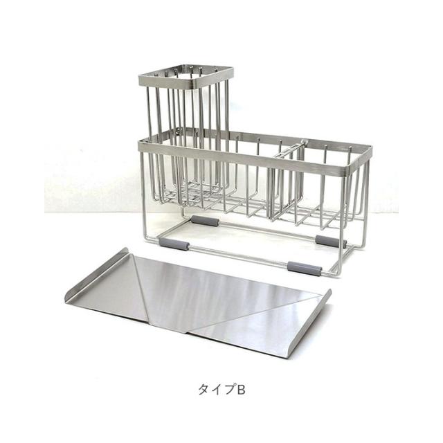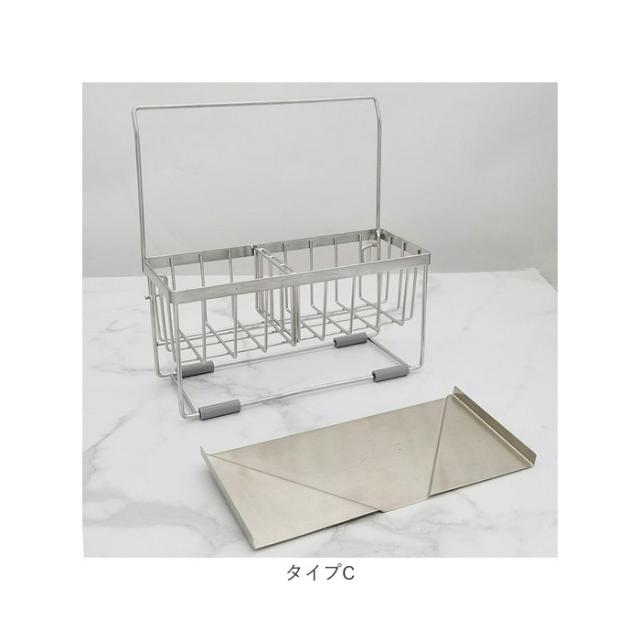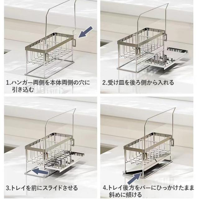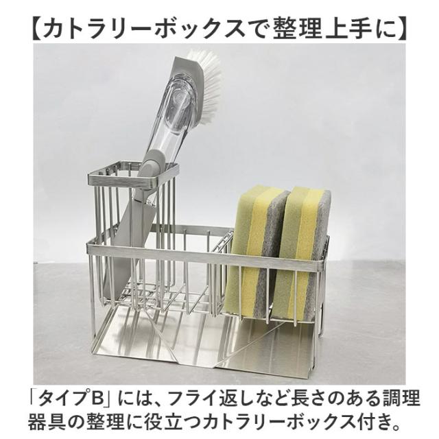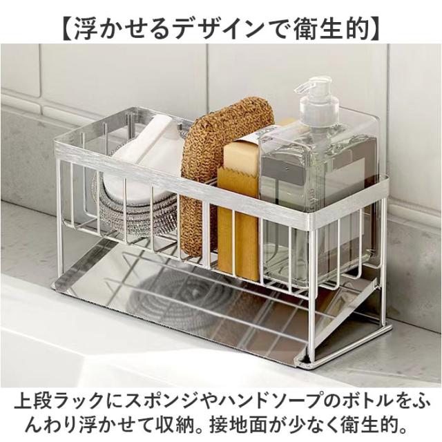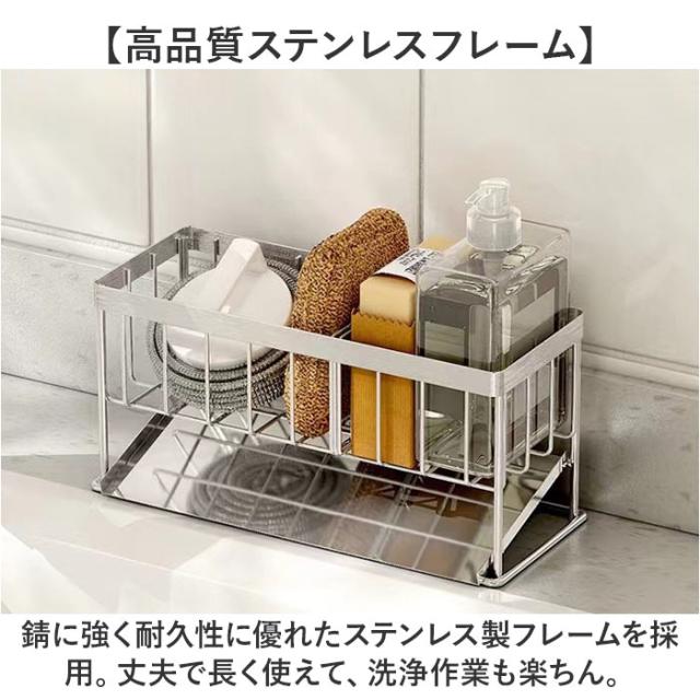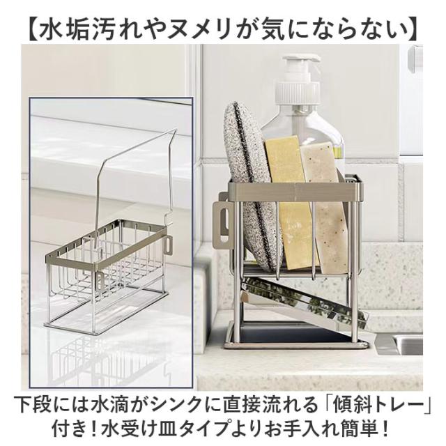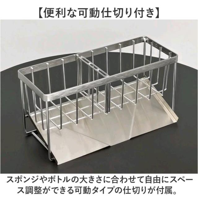 スポンジラック ステンレス 通販 スポンジ収納 スポンジ置き 洗剤置き キッチンシンク 斜め トレー付き ボトルホルダー ハンドソープ置き 水切りラック 水が流れる 可動式仕切り