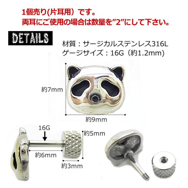 16G パンダ 動物 アニマル ピアス ボディピアス かわいい 人気 軟骨ピアス 軟骨用 耳たぶ用 サージカルステンレス316L アレルギー対応 金アレ bp330
