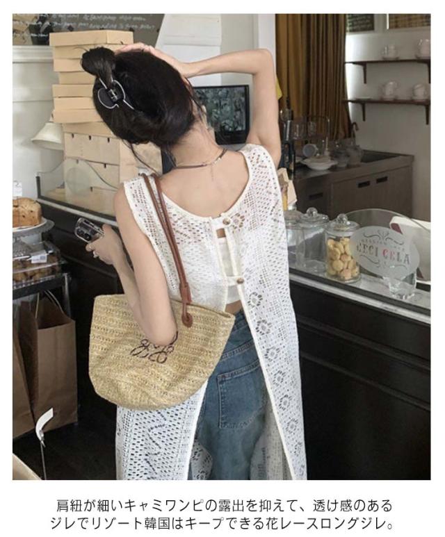 | クロゼットに眠っている洋服がよみがえる2wayジレワンピース。 いつものコーデにプラスするだけでこなれる一枚。 甘めの総柄ワンピースに加えて、甘さを中和し、トレンドライクな着こなしに。 肩紐が細いキャミワンピの露出を抑えて、透け感のあるジレでリゾート韓国はキープできる花レースロングジレ。 縦ラインを強調しながら、体型のラインを隠して、着痩せ効果抜群! 前後でこなる表情を楽しめる2way仕様で、その日の気分に合わせられる一枚です。 | |