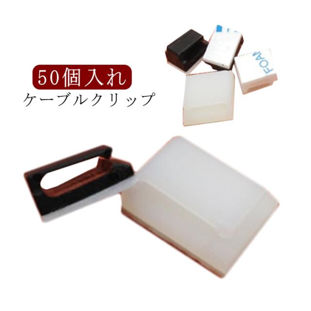 50個入れ ケーブルクリップ ケーブルホルダー 両面テープ 穴あけ不要 PC 収納 簡単設置 整頓 デスク コード 固定 整理 ストッパー 車 壁 配線管理 フック コード収納 コードまとめる 配線止め 配線隠し 車内充電ケーブル