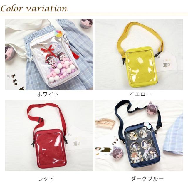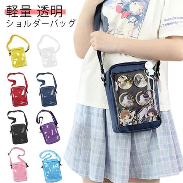 痛バッグ 痛バ ショルダーバッグ レディース クリアバッグ 小さめ ミニバッグ 軽量 透明 おしゃれ かわいい ミニショルダー 斜めがけ 肩掛け カジュアル シンプル 缶バッジ 推し活グッズ オタク ぬいぐるみポーチ 見せバッグ ピンク 赤 ブルー 水色 紫 イエロー