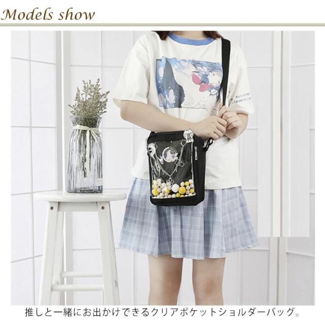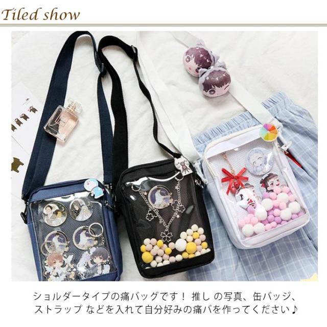 | 推しと一緒にお出かけできるクリアポケットショルダーバッグ。 見せたいアイテムをオシャレに持ち歩けます♪ 化粧品やブランドアイテムはもちろん、痛バッグとして、好きな芸能人やアニメキャラの写真・缶バッジ・ストラップなど、マイコレクションを入れて自由にアレンジ◎ ショルダータイプの痛バッグです! 推し の写真、缶バッジ、ストラップ などを入れて自分好みの痛バを作ってください♪ 小さめサイズで使い勝手の良い痛バッグをお探しの方にピッタリ◎ コンパクトかつシンプルなデザインの痛バッグなので普段使いでも重宝します! | |