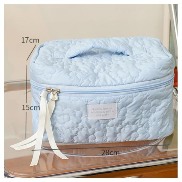| 選べる3サイズ ふわふわと可愛い大容量化粧ポーチ ガバット開くので、中のものが見やすくて便利 滑らかふわふわの触感、使い心地も肌触りも抜群です。 出張、旅行などにも重用する 中身は綿を入り、クッション性があるので大切な化粧品を守ります。 | |