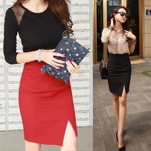 【グラシア】 スカート セクシー レディース シンプル スリット タイト ファスナー 伸縮性 美ライン ブラック レッド S M L XL