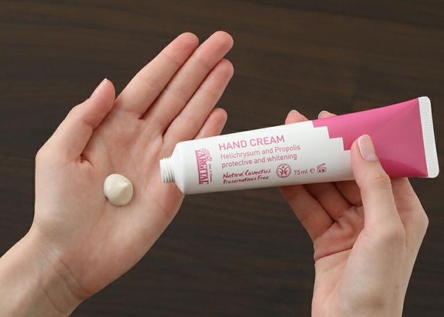 | 日々の水仕事や消毒で荒れる手肌を優しく守るハンドクリーム。 |