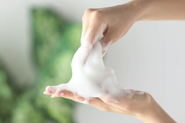 | 手と石けんを軽く濡らしよく泡立てます。顔・体どちらにも使えます。 | |