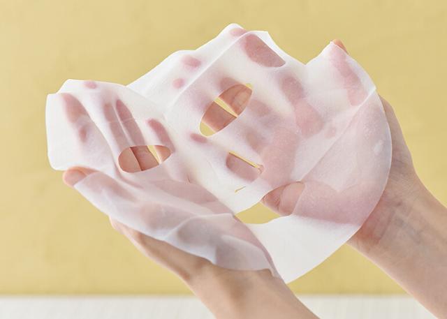 【使用方法】 1.洗顔後、化粧水でお肌を整えた後、清潔な手で袋からマスクが破けないように丁寧に取り出します。 2.最初に目の位置、次に口の位置にシートを合わせてから、顔全体に密着させてください。 3.そのまま5分ほど置いて、そっとはがします。お肌に残った液は、手のひらでなじませると効果的です。 | ||