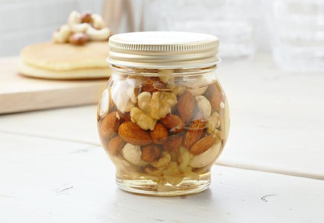 | ナッツとはちみつの組み合わせはこんなに贅沢 ビューティーヘルシーナッツ。 アーモンドにくるみ、カシューナッツにマカダミアナッツ。 個性豊かにそれぞれの魅力を持つ4種のナッツをさっぱりクセのないアカシアハニーに漬け込んだ「ナッツの蜂蜜漬け」です。 ハンガリー産のアカシア蜂蜜を贅沢に使用。そこに、世界中から仕入れた最高品質のナッツたちをじっくり漬け込みました。とろ〜りマイルドで贅沢な甘みが、ナッツの香ばしさの中にもじわっと溶け込んで、一皿の極上スイーツを食べているよう。 ふだん不足しがちなミネラルや脂質「不飽和脂肪酸」、そしてたっぷりのビタミンEを含む、美人御用達のナッツたち。 それをポリフェノール・ビタミン・アミノ酸の宝庫であるハチミツで漬け込んだ肌にも体にもお口にもおいしいとっておきの1瓶です。 |