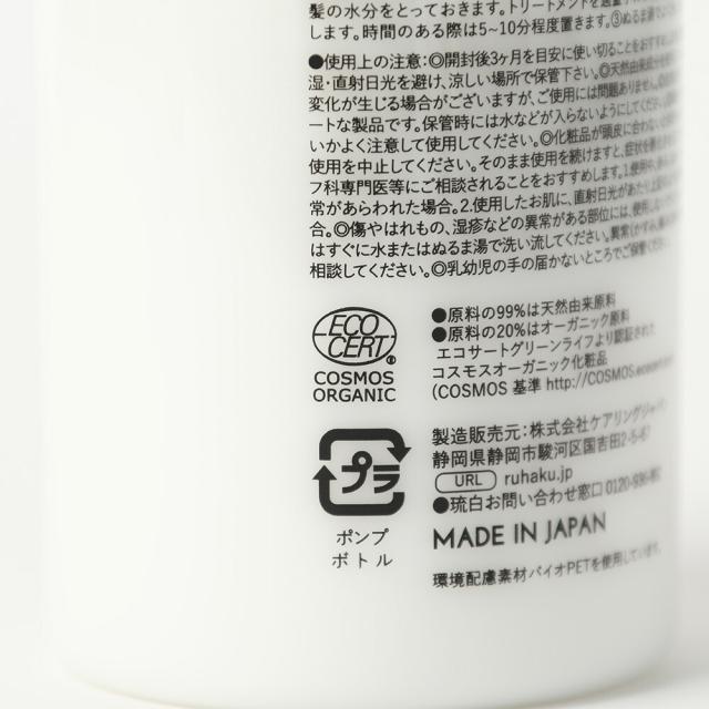 琉白(RUHAKU)タラソトリートメント 300ml | ルハク るはく ヘアケア ヘア 頭皮ケア 自然由来 オーガニック エコサート認証 低刺激 お子様 キッズ 敏感肌 皮脂 月桃 リンス 保湿 ノンシリコン ts1031