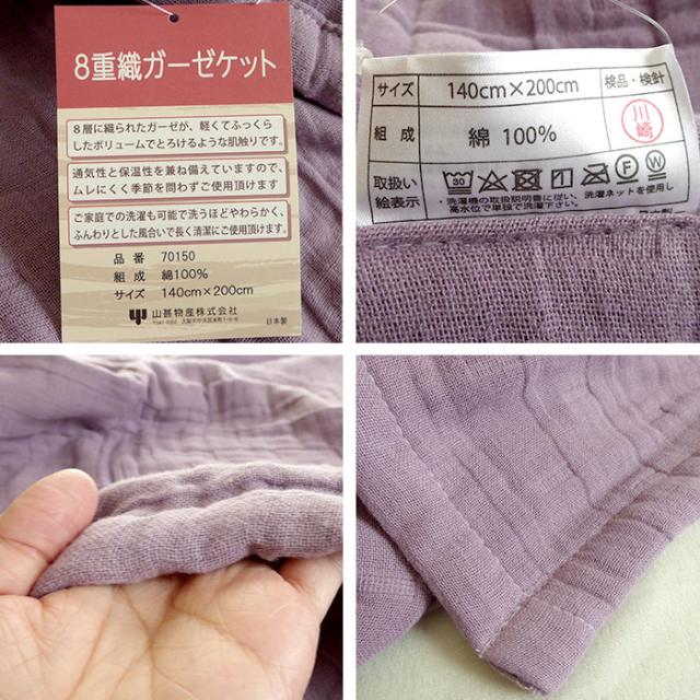 日本製の8重織ガーゼケットは、綿100%で作られた肌に優しい素材が特徴です。