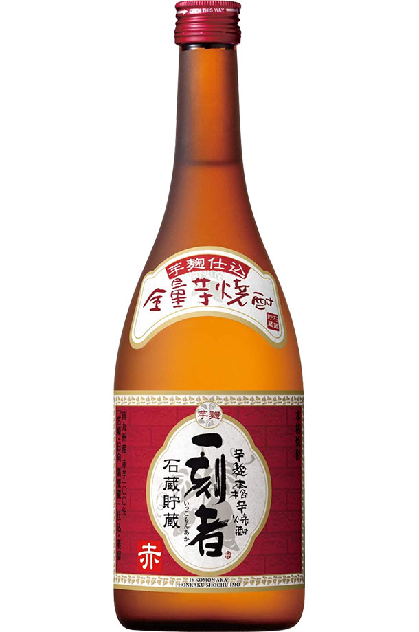 | 宝酒造 全量芋焼酎 一刻者 赤は、芋と芋麹だけでつくる“赤芋100%”の全量芋焼酎。 原材料のさつまいもには、麹も含め南九州(宮崎・鹿児島)産さつまいも「赤芋」のみを使用。 独自の“芋麹仕込”だから実現した上品な風味を保ちながら熟成させるため、宮崎・日向 黒壁蔵に建設した、内部の温度変化が少ない“石蔵”でじっくりと貯蔵・熟成させています。 「全量赤芋焼酎」ならではの、芋本来の甘みゆたかな香りとすっきりとした味わいが際立っています。 |