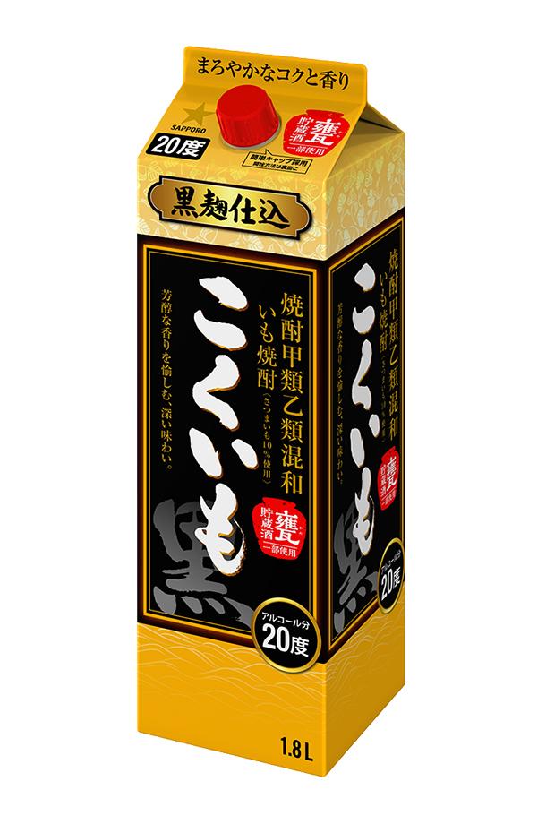 サッポロ こくいも 黒 焼酎甲類乙類混和 いも焼酎 黒麹仕込 甕貯蔵酒一部使用 20度 紙パック 1.8L 1800ml 1梱包6本まで