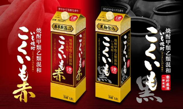 こくいもブランドは甕(かめ)貯蔵酒を一部使用した黒麹仕込本格芋焼酎と、クリアな味わいの甲類焼酎をバランスよくブレンドした芋焼酎です。毎日飲んでも飲み飽きないすっきりとした味わいをベースにしながらも、黒麹で仕込んだ粗濾過(あらろか)原酒を使用することで、芋焼酎らしい香りとコクを実現しました。