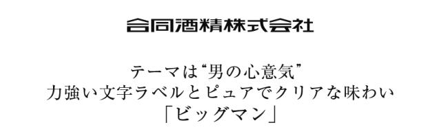 商品のメインテーマは「男の心意気」。墨痕あざやかな「ビッグマン」の文字をラベルに描いた、発売当時には珍しい2.7Lの大容量ペットボトル商品として誕生しました。