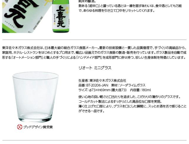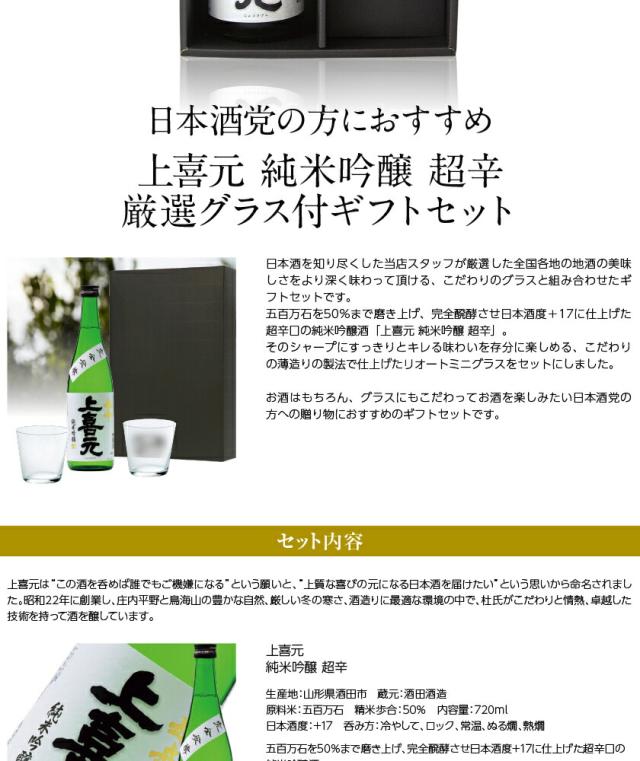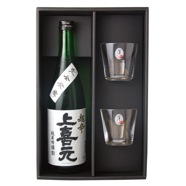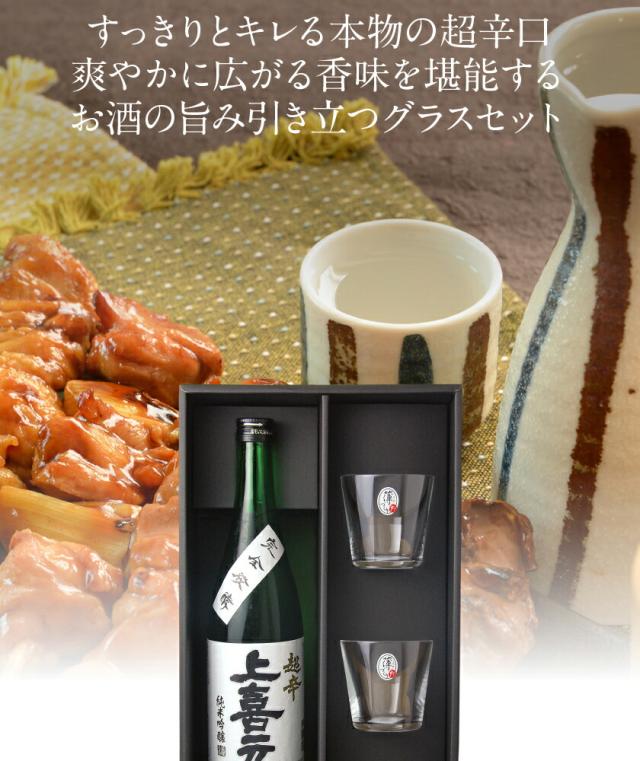 上喜元 純米吟醸 超辛 グラス付ギフトセット ギフト箱付 720ml×1・グラス×2 (酒田酒造 超辛、 東洋佐々木ガラス リオートミニグラス) ラッピング済