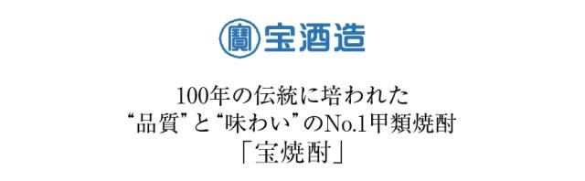 | 100年の伝統に培われた品質と信頼の「寶」ブランド。 宝焼酎は飲み飽きしない口あたりとすっきりとした味わいのNo.1甲類焼酎です。 大麦やトウモロコシ等を原料にした樽貯蔵熟成酒をブレンドすることで、ピュアですっきりとしながらも、クセになるまろやかな味わいを実現しています。 |
