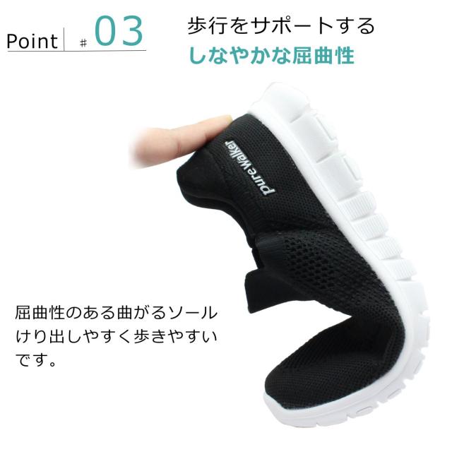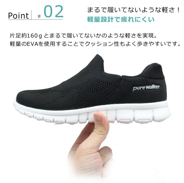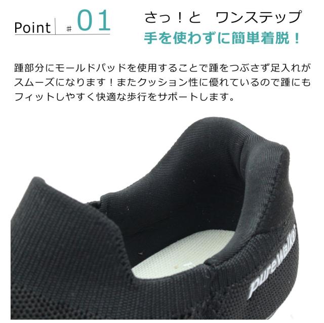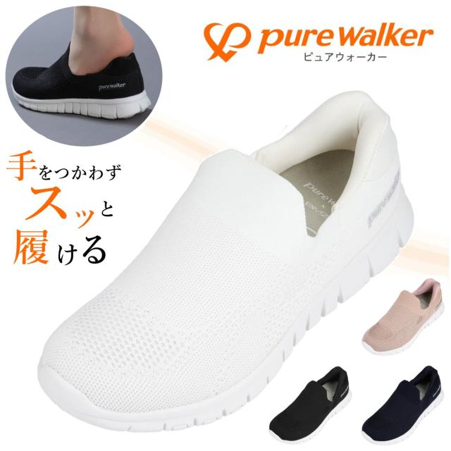 PURE WALKER ピュアウォーカー レディース スニーカー PW1502 ハンズフリー スリッポン スリップイン BMZインソール 靴