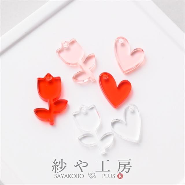 チャーム クリア ハート チューリップ アクセサリー パーツ 4個 花 フラワー ハート型 ビーズ アクリル アクリルビーズ アクリルパーツ 通し穴 小さめ 問屋 ハンドメイド資材 さや工房 手作り アクセサリーパーツ 卸 おすすめ