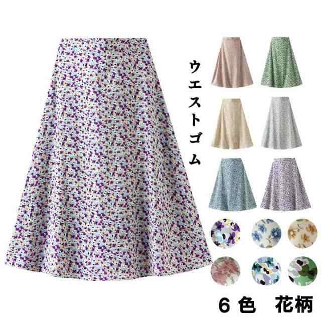 スカート 春 夏 フレアスカート ロング 40代 レディース 花柄スカート デート シフォン aライン 20代 30代 50代 ハイウエスト おしゃれ 通勤 大人 着痩せ6色