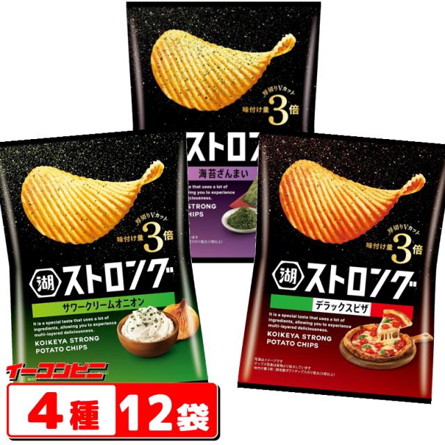 湖池屋 ストロング 53g 3種各4袋セット (計12袋) 海苔ざんまい/デラックスピザ/サワークリームオニオン ポテトチップス ギザギザ