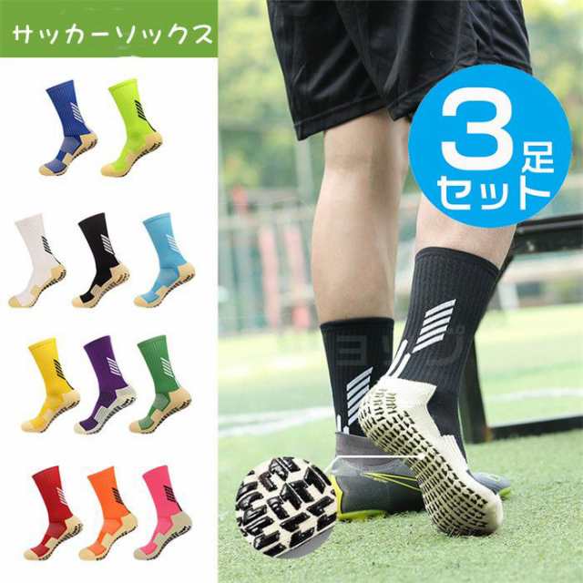サッカーソックス 3足セット 滑り止め 靴下 スポーツ テニス バスケットソックス ショートソックス 中厚手 23-28cm 子供サイズ22-24cm