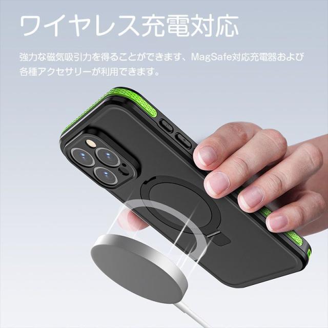 附属のMagsafe鉄リングはケースの後側に固定して、強力な磁気吸引力を得ることができます、MagSafe対応充電器および各種アクセサリーが利用できます。ワイヤレス充電の時、ケースを取り外す必要はありません、つけたまま充電可能となります。