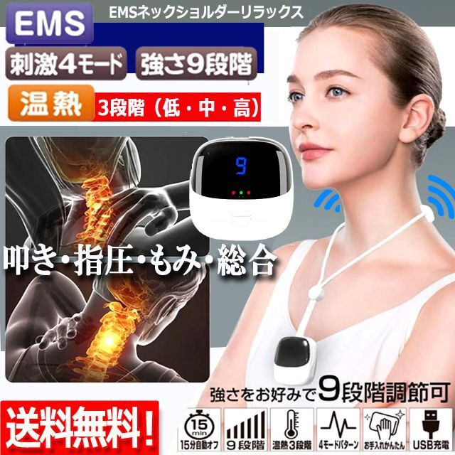 気持ちよさを選べる4×9EMS+温熱リラクゼーション!EMSネックショルダーリラックス (USB充電 叩き 指圧 もみ 電気刺激)