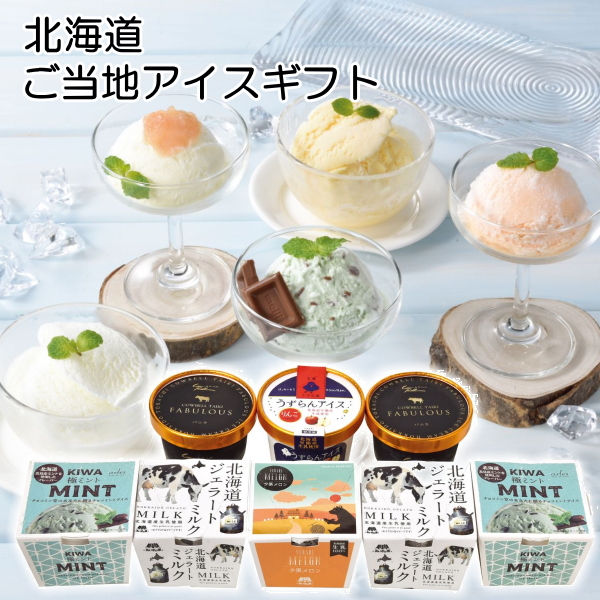 北海道内のこだわりアイスの詰合せ! 北海道らしいミルクジェラートや夕張メロンなど様々な味をお楽しみください。