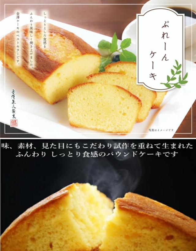 【金澤窯出しパウンドケーキ プレーンの商品詳細】 ●しっとりふんわり美味しく焼き上げました。パウンドケーキのベストセラーです。 ●ふわふわした食感を出すためにあえてアメリカ・カナダ産の高品質小麦を使用! ●キューピーの加熱殺菌された卵は、サルモネラ菌・鳥インフルエンザ・黄色ブドウ球菌などを完全に死滅させます。 原材料に安全なものを使用することにより安心を提供できると考えております。 ●バターを使用せず、味の素のさらさら「キャノーラ油」を使用することにより、酸化しにくく、冷やしても固くならないパウンドケーキを焼き上げることが出来ました。 ●ベースの甘味はグラニュー糖を使用!飽きのこない上品な甘さに仕上げました。