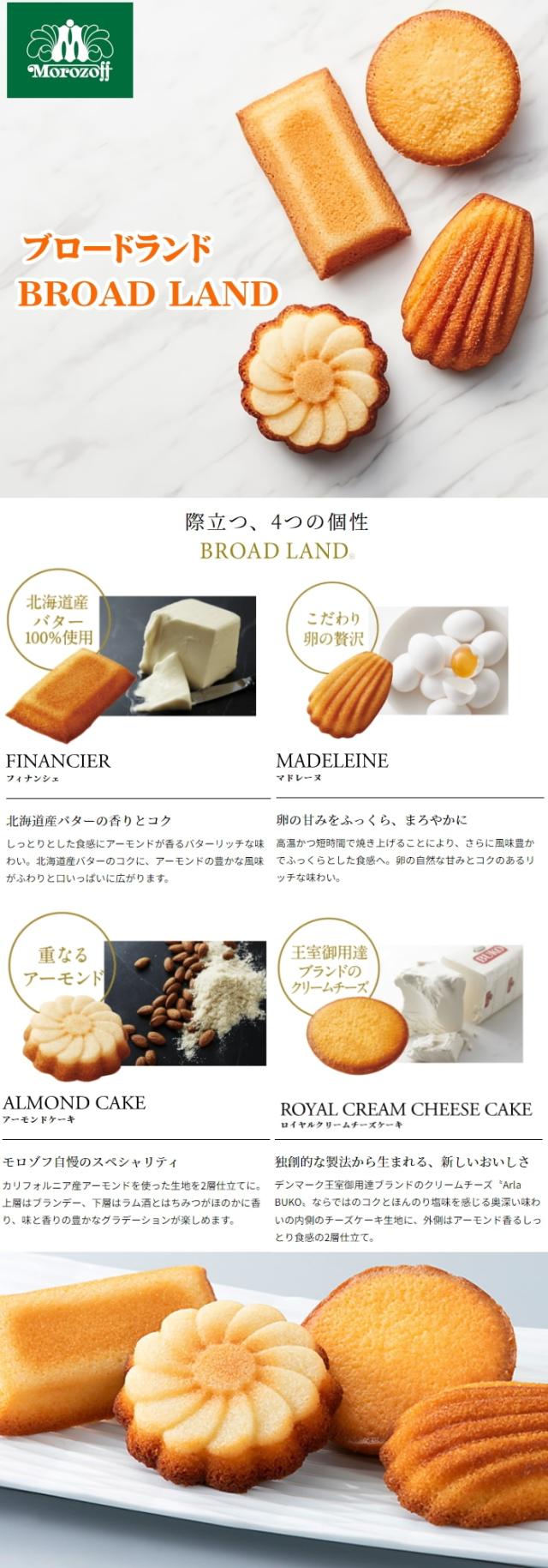 モロゾフ ブロードランド詰合せ7個 MO-2419 ブランド、焼き菓子、北海道産、ななほなみ、アーモンド、クリームチーズ、こだわり、丁寧、マドレーヌ、フィナンシェ、チーズケーキ