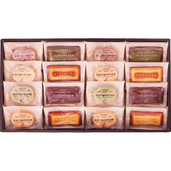 商品内容:ダックワーズ(プラリネ)・フィナンシェ(プレーン)×各4、ダックワーズ(ショコラ・抹茶)・フィナンシェ(ショコラ・抹茶)×各2