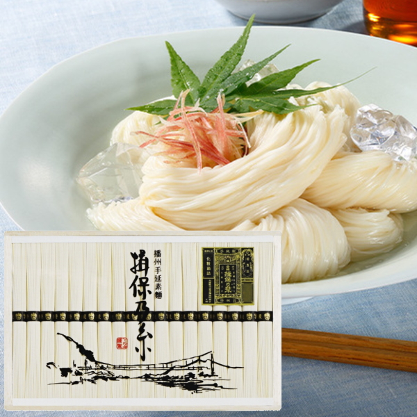 およそ600年受け継がれる伝統の手延製法で、幾度も熟成を重ねながら、職人が丹精込めて作り上げた播州地方の名品です。
