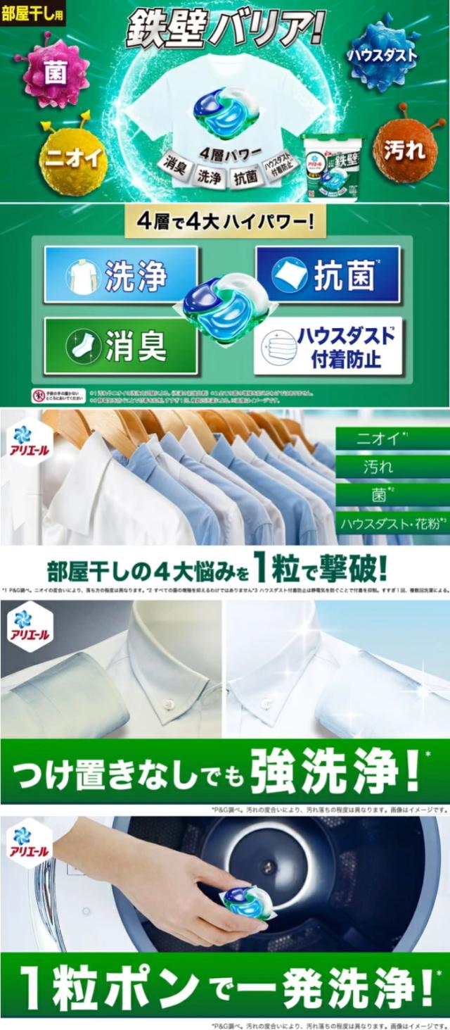 ポンと入れるだけの簡単お洗濯!!アリエール液体洗剤史上最強の消臭洗浄力のジェルボールギフトセット。