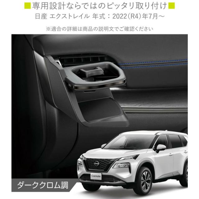 エクストレイル専用 ドリンクホルダー 助手席側用 ダーククロム調 T33 / SNT33 2022年7月〜 X-TRAIL 専用設計 カーメイト NZ858