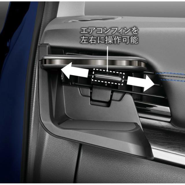 専用の取り付け構造にすることで、エアコンフィンの左右の向きを調整できるようにしています。ドリンクホルダーとエアコンフィンの間に指が入るスペースを設けることで、エアコンフィンを操作できるようにデザインしました。