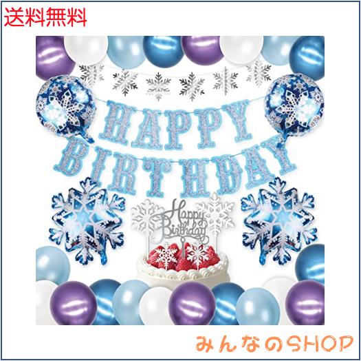 ?【セット内容】?スノーフレイク・アルミバルーン x2 ?ラウンド・アルミバルーン x2 ?ゴムバルーン:メタリックパープル x5、ホワイト x5、パープル x5、ライトブルー x5、メタリックブルー x5 ?「Happy Birthday」レターバナー x1 ?スノーフレイク・ガーランド x1 ?ケーキトッパーセット x1 ?その他アクセサリー:風船クリップ x4、ストロー x2、両面シールセット x1(接着ドット20個)