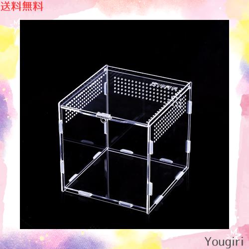 爬虫類・両生類用飼育ケース 飼育ケージ 透明 飼育容器 小動物用 アクリル製 給餌箱 給餌ボックス 隔離ボックス スライドカバー 通気性