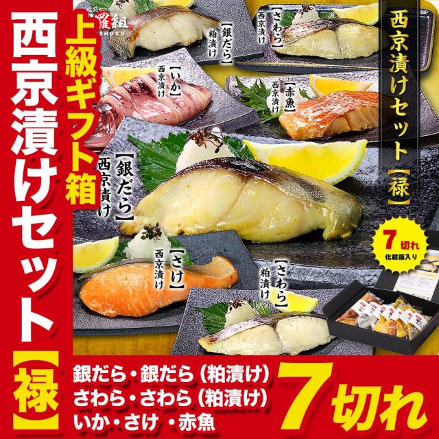 高級銀だら入り 西京漬け 7切れセット【禄】 上級ギフト専用化粧箱 個別真空包装 粕漬け タラ 鱈 いか イカ さわら 鰆 鮭 さけ 赤魚 ギフト
