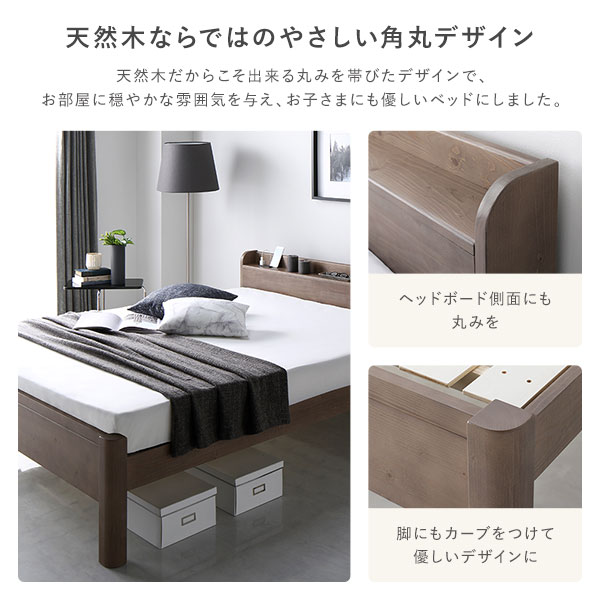 コンセント 棚付 天然木 セミダブルベッド ベッドフレーム 寝具ベット すのこベット ベットフレーム ローベッド ローベット フロアベッド フロアーベッド フロアベット