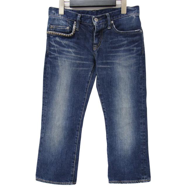 HYSTERIC GLAMOUR ヒステリックグラマー パンツ デニムパンツ ブルー XXS クロップド丈 ローライズ ストレッチ コットン 綿 スタッズ ジーンズ ジーパン ボトムス ズボン 日本製 シンプル カジュアル 大人 きれいめ【レディース】【中古】【K4066】