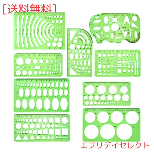 Mollytek 9枚セット 建築士 テンプレート 製図 テンプレート 一般総合定規 建築士試験用組み合わせテンプレート 学校教育用 建築科用