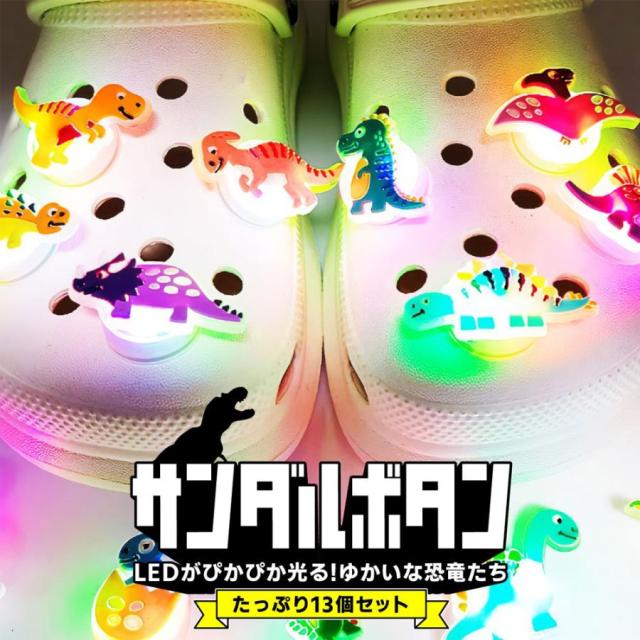 クロックス crocs サンダル パーツ 恐竜 ジビッツ LED キッズ 子供 男の子 女の子 シューパーツ 光る シューズチャーム サンダルボタン チャーム かっこいい デコ カラフル ティラノザウルス トリケラトプス プテラノドン