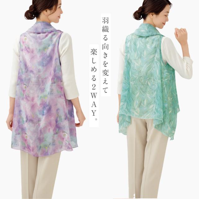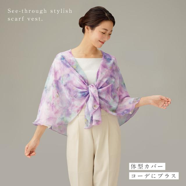 ストール スカーフ 薄手 春夏 大判 スカーフベスト 花柄 レディース 春 夏 細魅せエアリースカーフベスト メール便対応