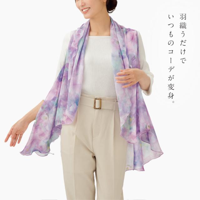 ストール 薄手 大判,レディース 春夏 ストール,春 スカーフ レディース,スカーフ,ストール,ベスト,ケープ,ボレロ,シワ隠し 首,軽量,軽い,シワになりにくい,持ち運び,冷房対策,冷え対策,日焼け対策首,羽織り,レディース,女性,大人,シニア,ミセス,ミセスファッション,細見え,痩せて見える,ボディーライン,体型カバー,すっきり,着痩せ,おしゃれ,お洒落,オシャレ,きれいめ,エレガント,高見え,フェミニン,上品,ファッション,コーディネート,40代,50代,60代,70代,ライトパープル,パープル,紫,ブルーグリーン,花柄,花,フラワー,柄,リーフ柄,ボタニカル,