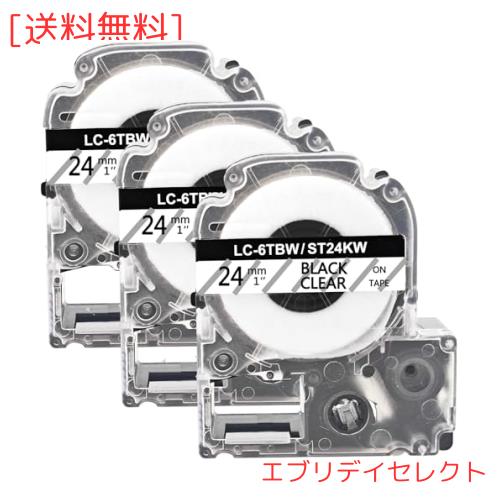 【ラベル仕様】モデル:キングジム テプラ st24k 色: 透明テープ 黒文字 幅: テプラテープ 24mm 長さ:8m タイプ:スタンダードテープ 本数:3本