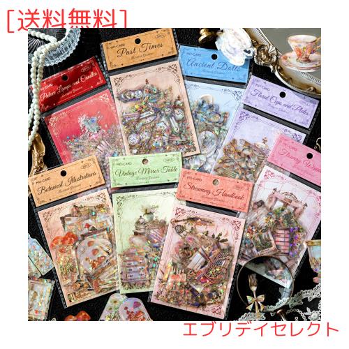 ◆商品名:Alideco 160枚 シール フレークシール コラージュ 素材 ペーパー 素材紙 レースユートピアステッカーレトロ アンティーク金箔シリーズ 海